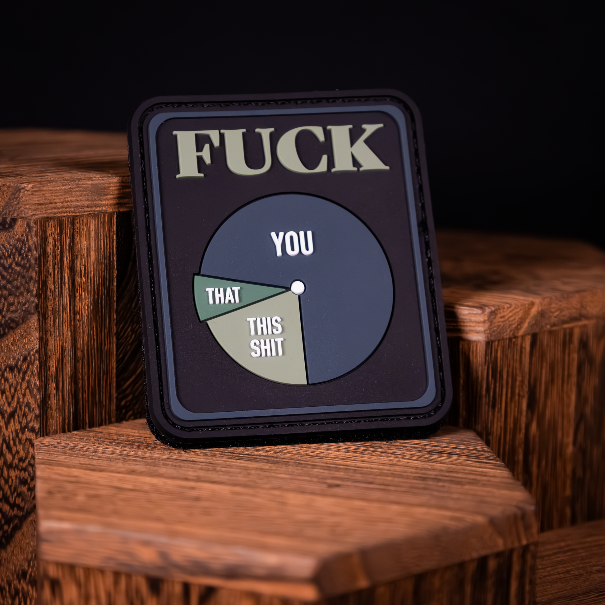 Step into brutally honest humor with the Fuck You, That, and This Shit PVC morale patch — a perfectly unhinged pie chart that says exactly what everyone’s thinking.